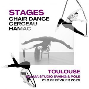 Stages d’1h30 : 35 ⏠(Hamac dynamique et combo, Chair Dance tricks et chorĂ©o).